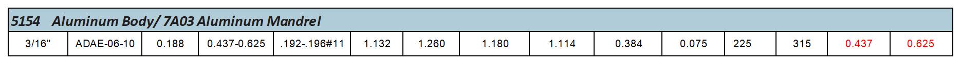 5154 Aluminum Body/ 7A03 Aluminum Mandrel