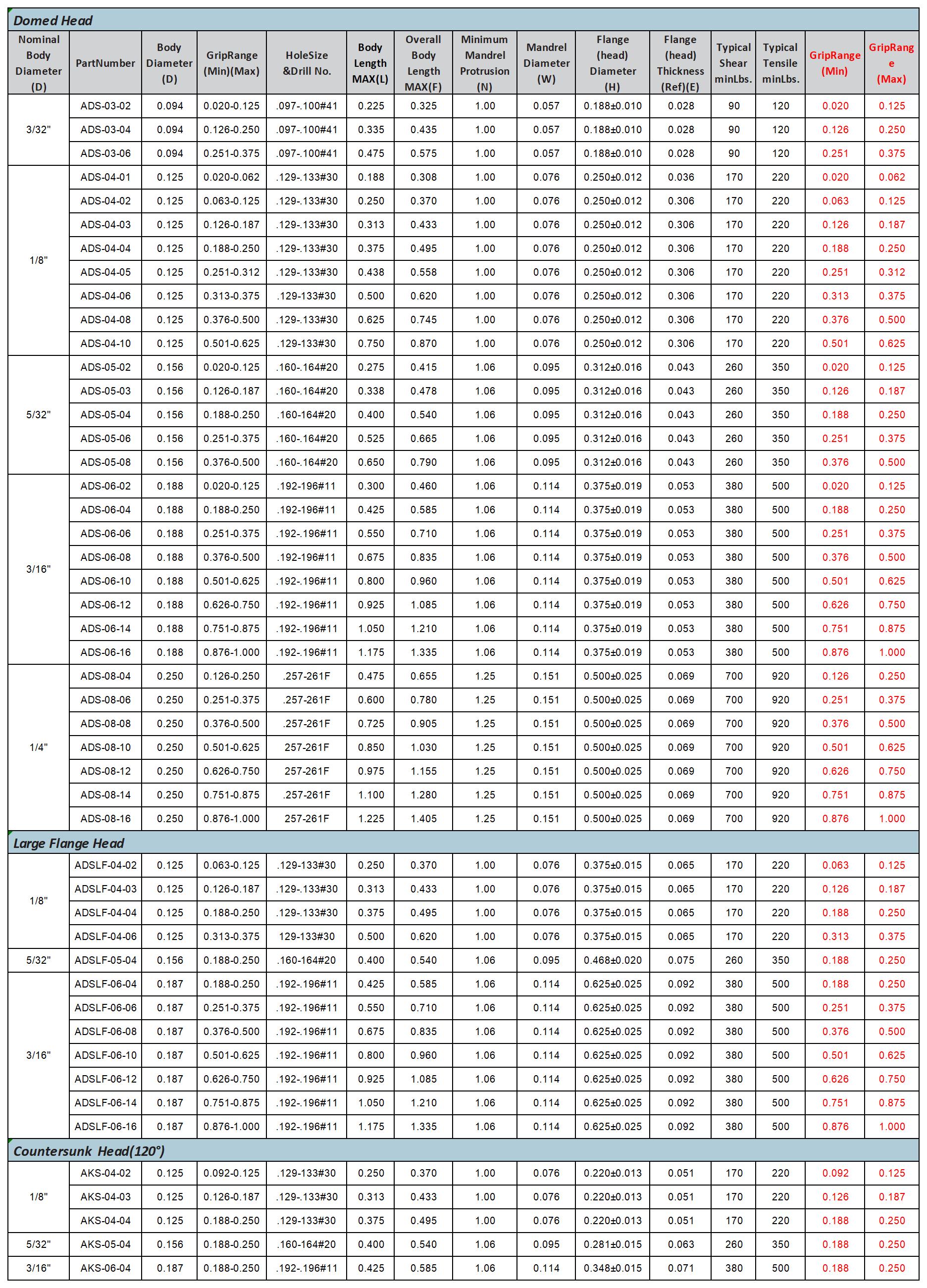 5056 Aluminum Body / Carbon Steel Zinc Plated Mandrel